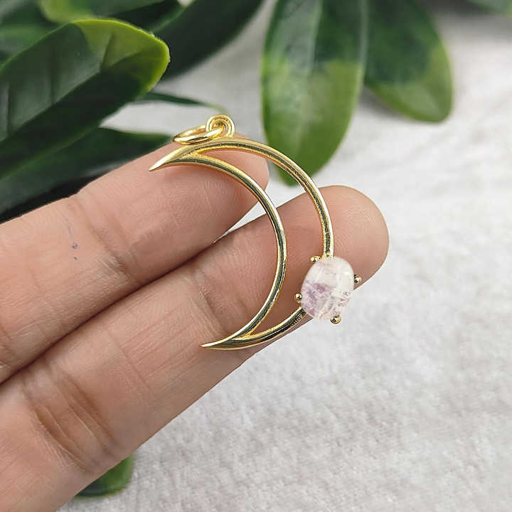 Gemstone 27mm Crescent Pendant 8x6mm Oval Prong Set Gold Plated Handmade Charm Half Moon Pendant Bulk Wholesale Jewelry Supplier