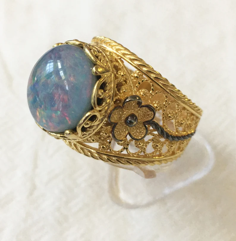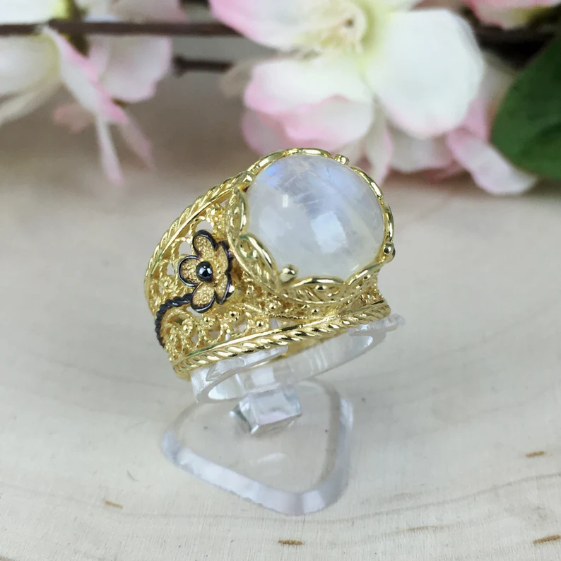 Rainbow Moonstone Black Opal Larimar Ring Unique 925 Sterling Silver Design Gold Plating Women's Party Jewelry Diamond Pearl