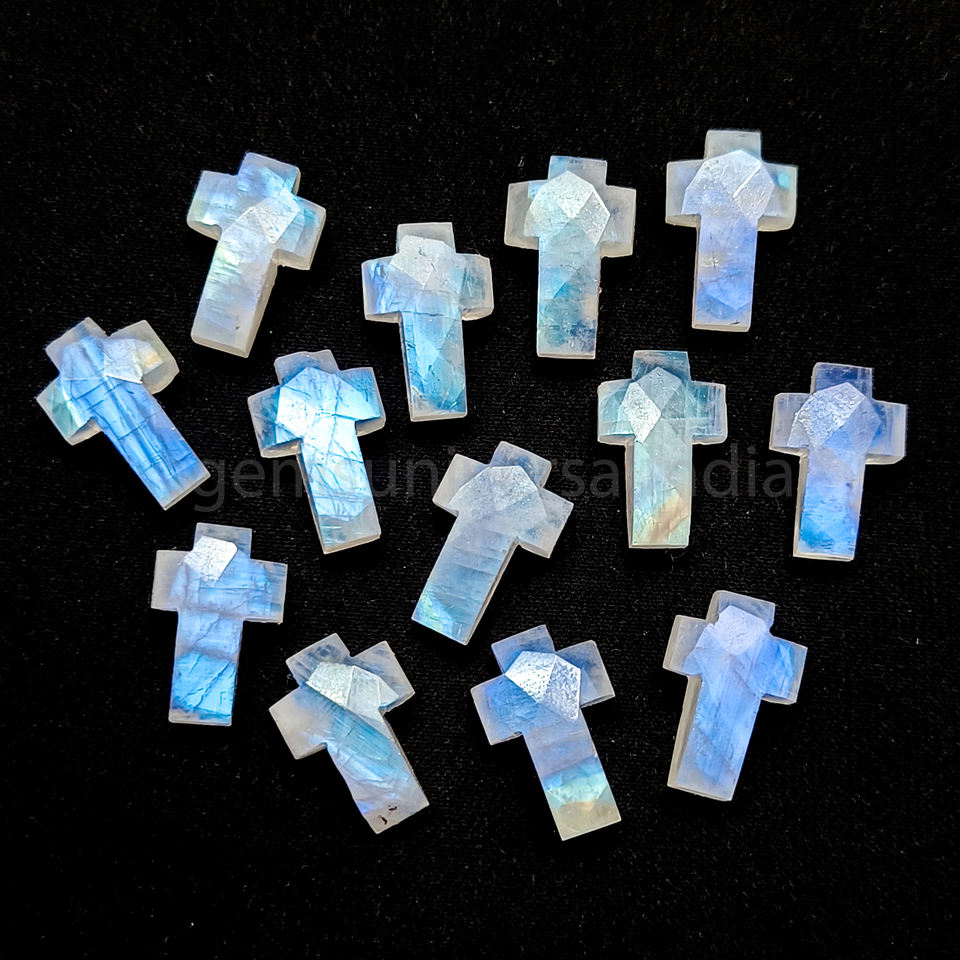 Rainbow Moonstone Cross Carved Gemstone Beads Moonstone Cross Carving Beads Healing Gemstone Holy Cross Beads Lord Jesus Charms
