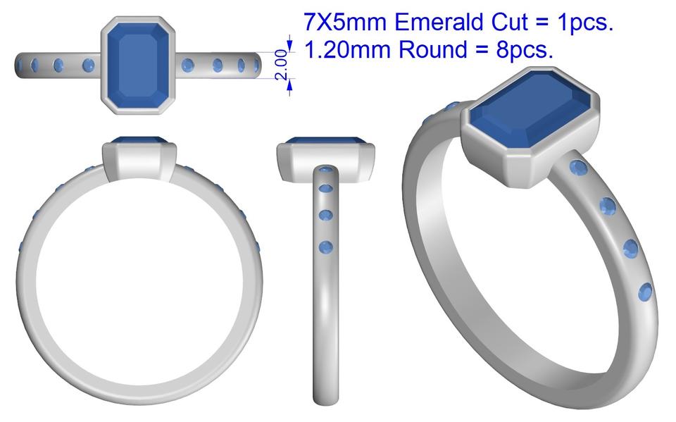 Stone Size:Emerald 7X5 MM, Round 1.2 MM