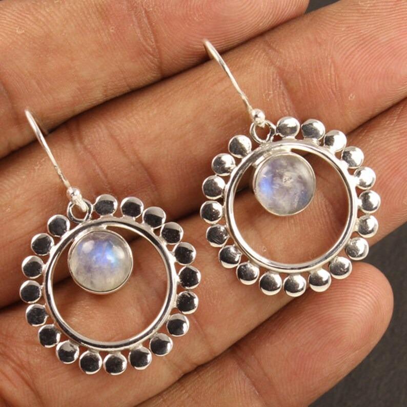 Rainbow Moonstone Gemstone Earrings 925 Sterling Silver Drop Earrings Trendy Party Women