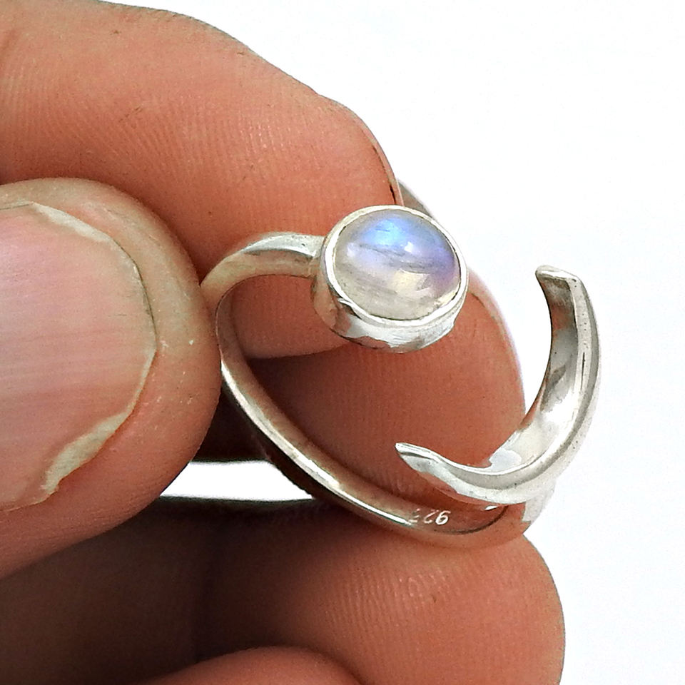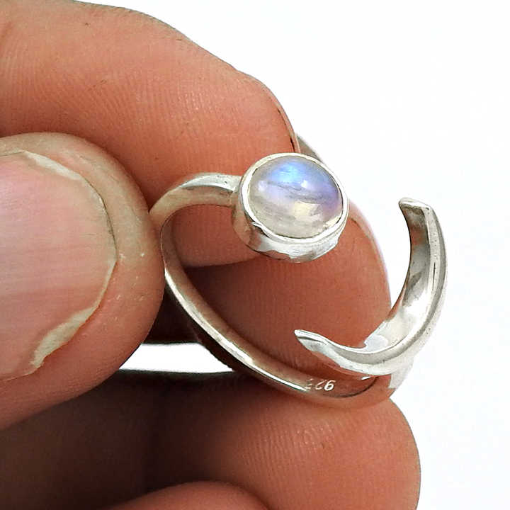 Rainbow Moonstone Gemstone Wedding Rings Fashion Handmade Jewelry Open Half Moon Designer Supplier Silver 925 Sterling Rings