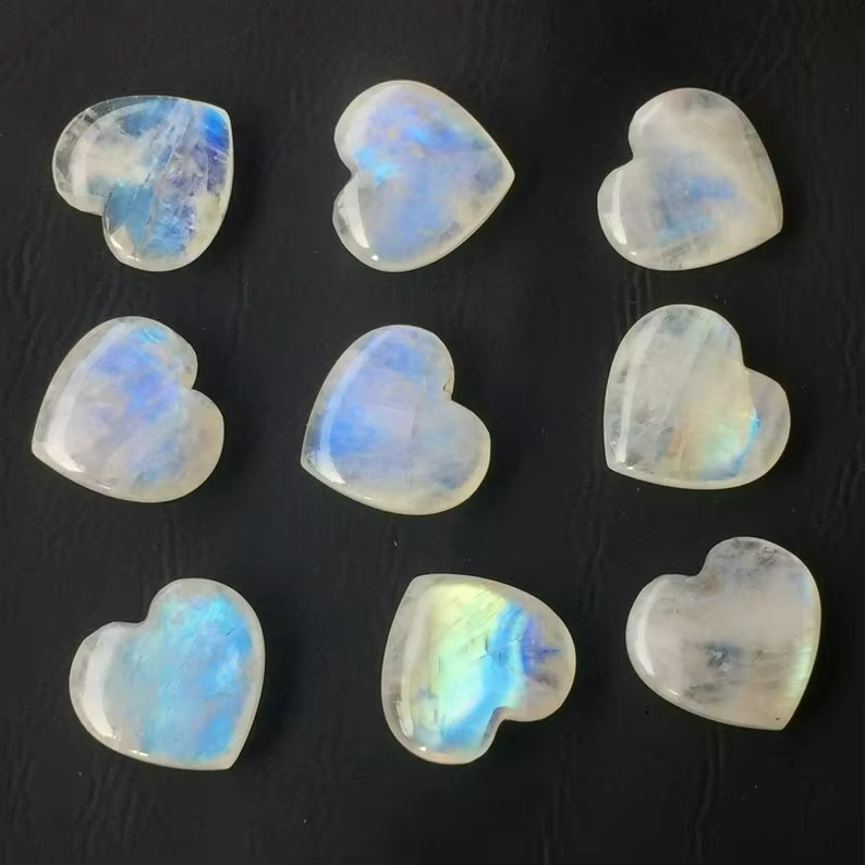 Rainbow Moonstone Heart Both Sides Smooth Polish Blue Flashy Loose Gemstone Gift for Girls Moms or Women