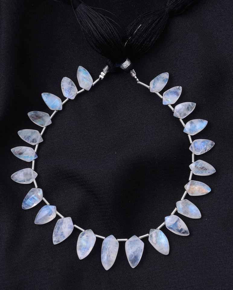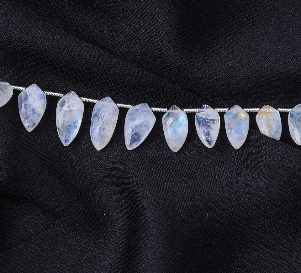 Rainbow Moonstone Loose Beads Smooth Faceted Drop Shape White Crystal Stones Third Party Appraised Rajasthan
