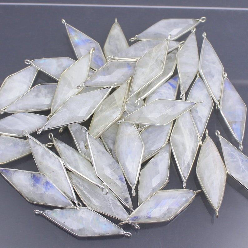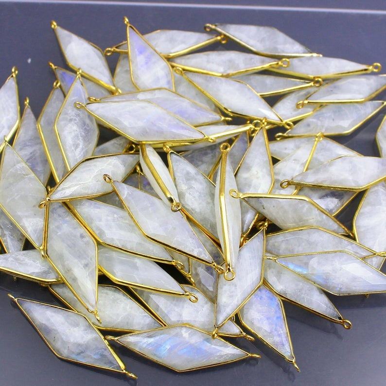 Rainbow Moonstone Marquise Shape Bezel Connector 925 Sterling Silver Jewelry With Gold Accent Silver Gold Number Pattern Charms