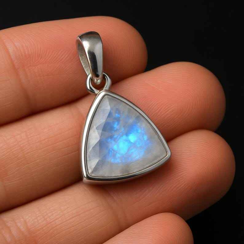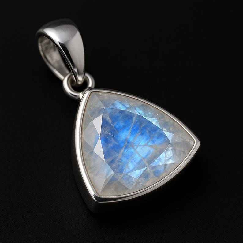 Rainbow Moonstone Trillion Cut Sterling Silver Pendant Necklace High Quality Unique Design IGI Certified Bohemian Jewelry Gift