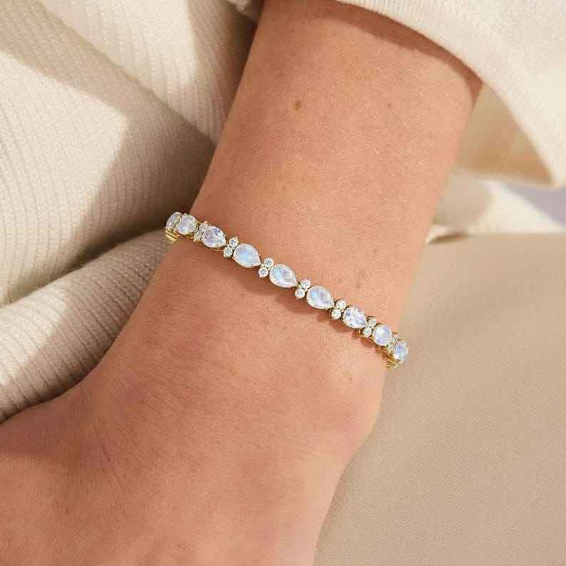 White Rainbow Moonstone Tennis Glowing Expansive Bracelet Crafted