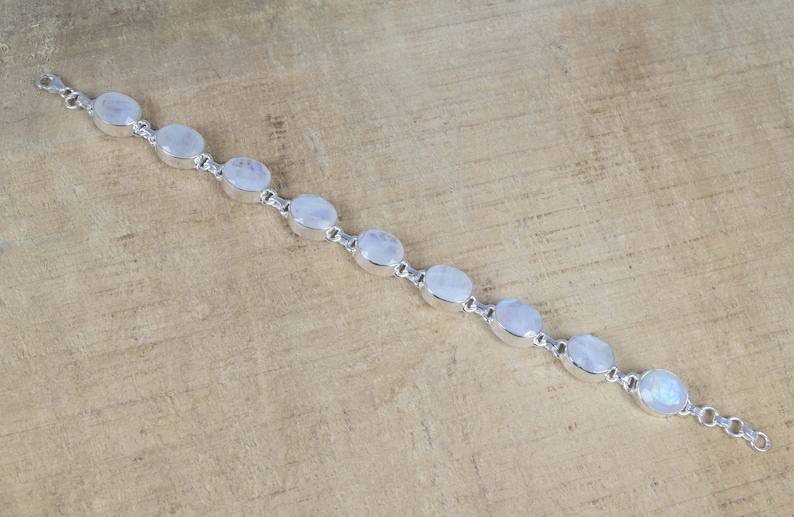 Rainbow Moonstone Sterling Silver Bracelet Adjustable Oval Gemstone Handmade Jewelry Natural Stone Silver Bracelet Gift