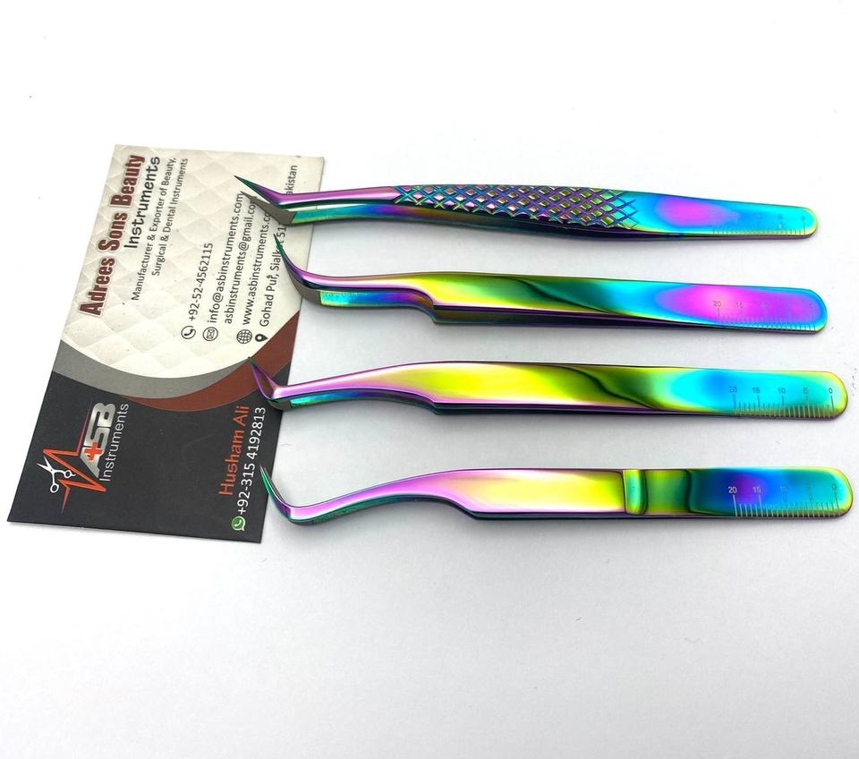 Rainbow Multi-Plasma Eyelash Extension Tweezers Custom Logo Japanese Stainless Steel Nano Fiber Tip Beauty Tweezer