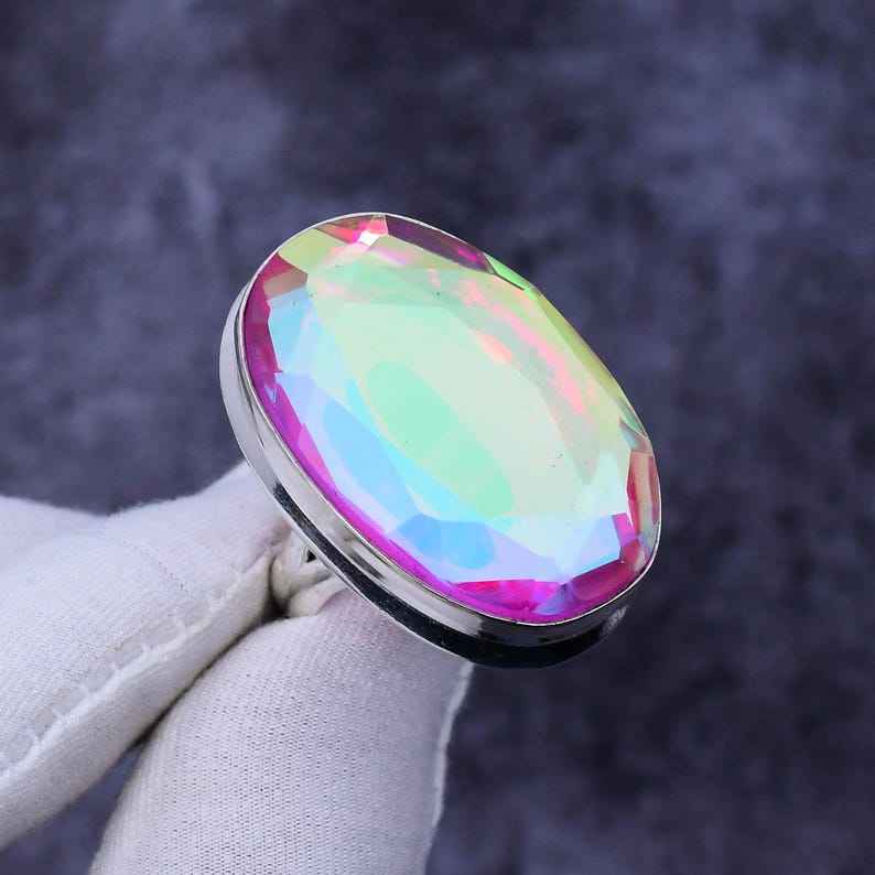 925 Sliver Made With Rainbow Mystic Topaz Ring
