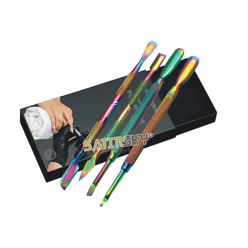 Rainbow Nail Cuticle Remover Pusher Tips Pedicure Tools Manicure Tools Stainless Steel Dual-End Cuticle Care Women Girl Premium