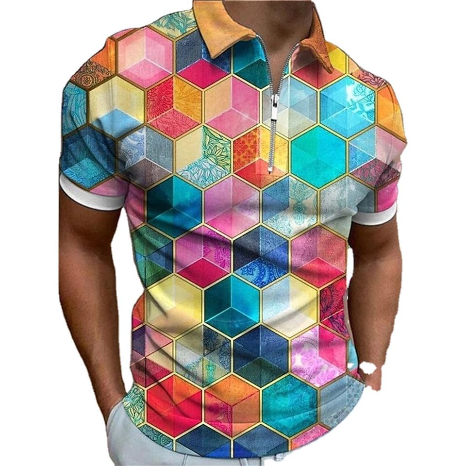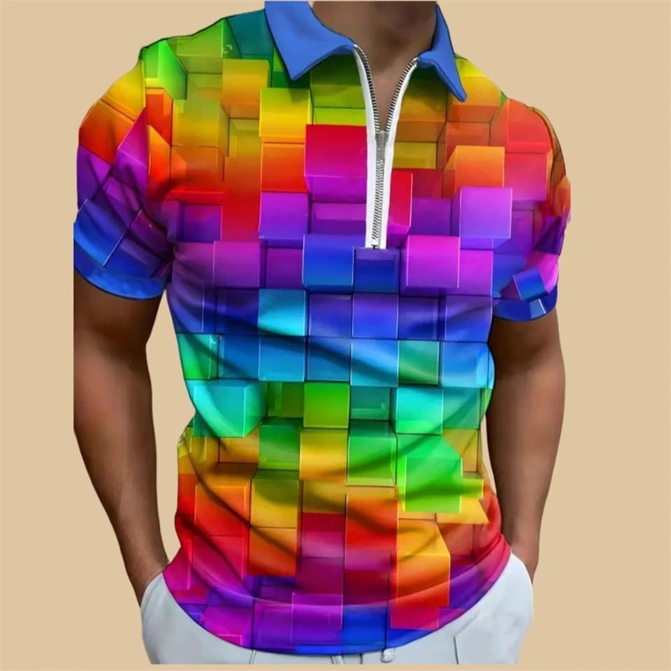 Men's Casual Fashion Rainbowed Zip T-Shirt High Quality 100% Cotton Short Sleeve Loose Oversized Solid Canvas for Polo Shirt Cas