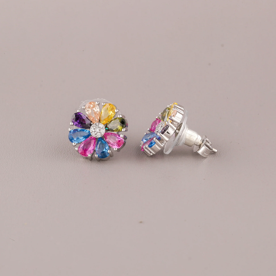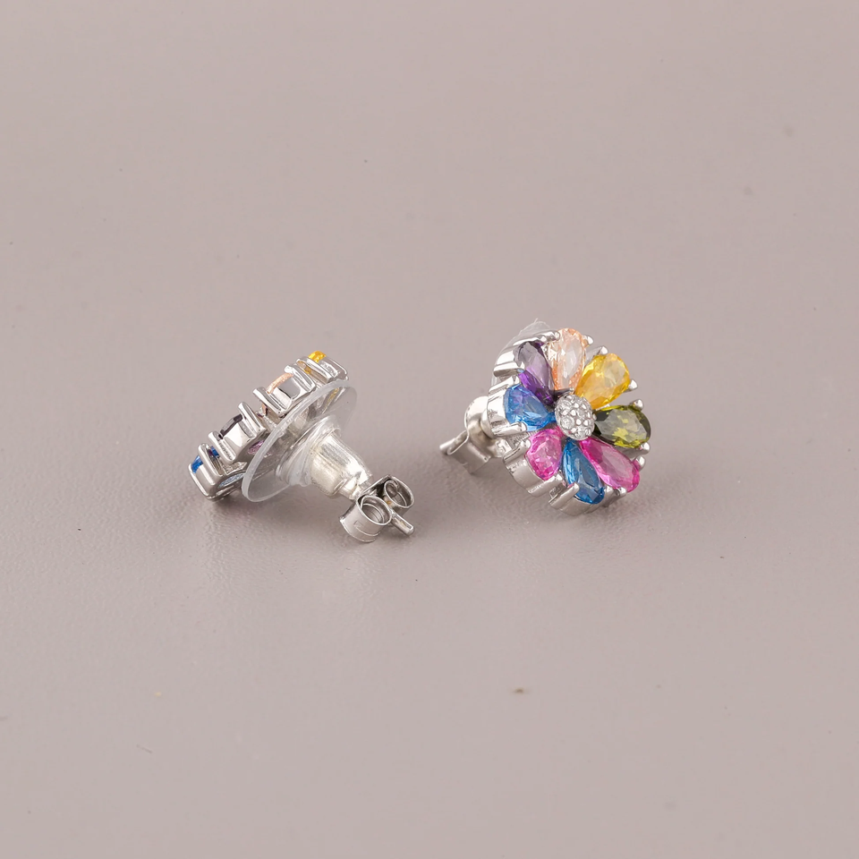 Rainbow Sapphire Luxury Moissanite Diamond Color Dangle Earrings for Women Stainless Steel Wedding Fashion Jewelry