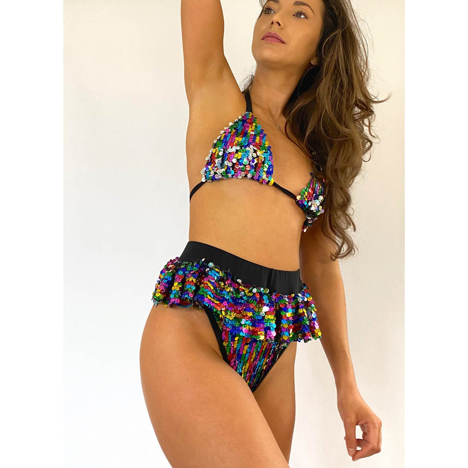 Rainbow Sequin High Waisted Frill Hot Pants