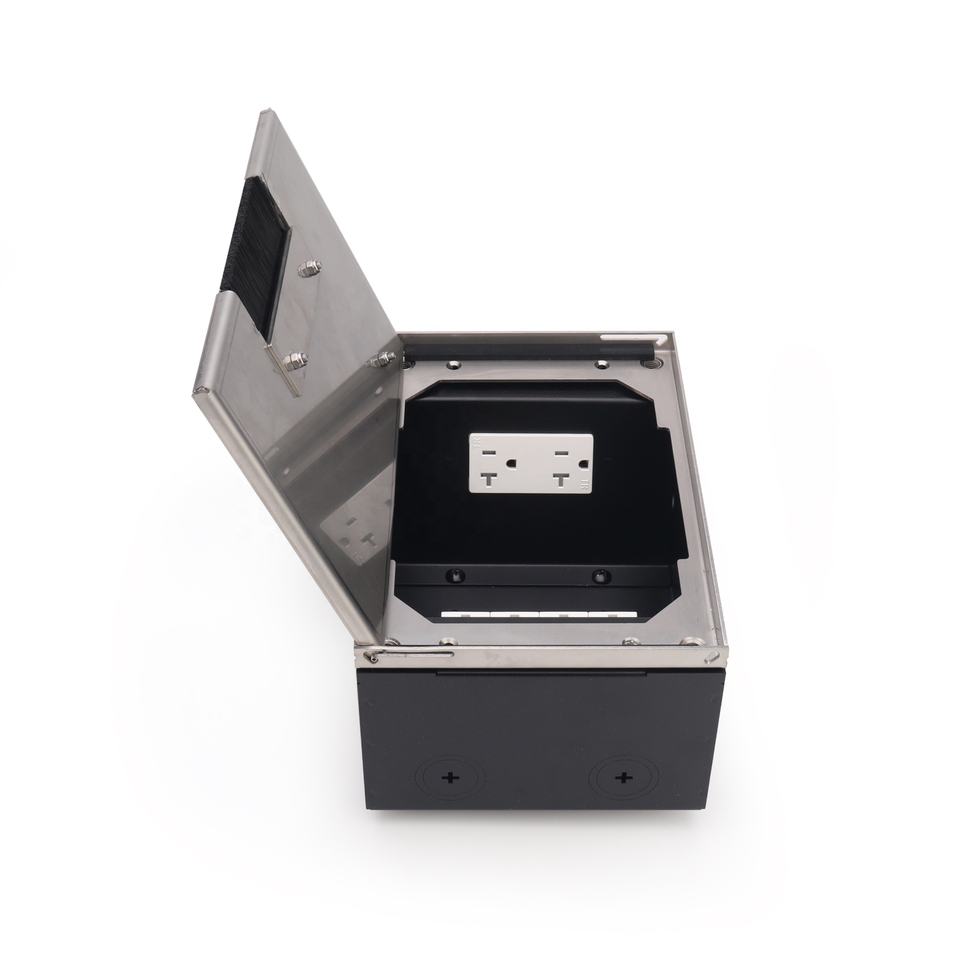 Raised Floor Electrical Box with Recessed Stainless Steel Lid and Integrated RJ45 Data Ports
