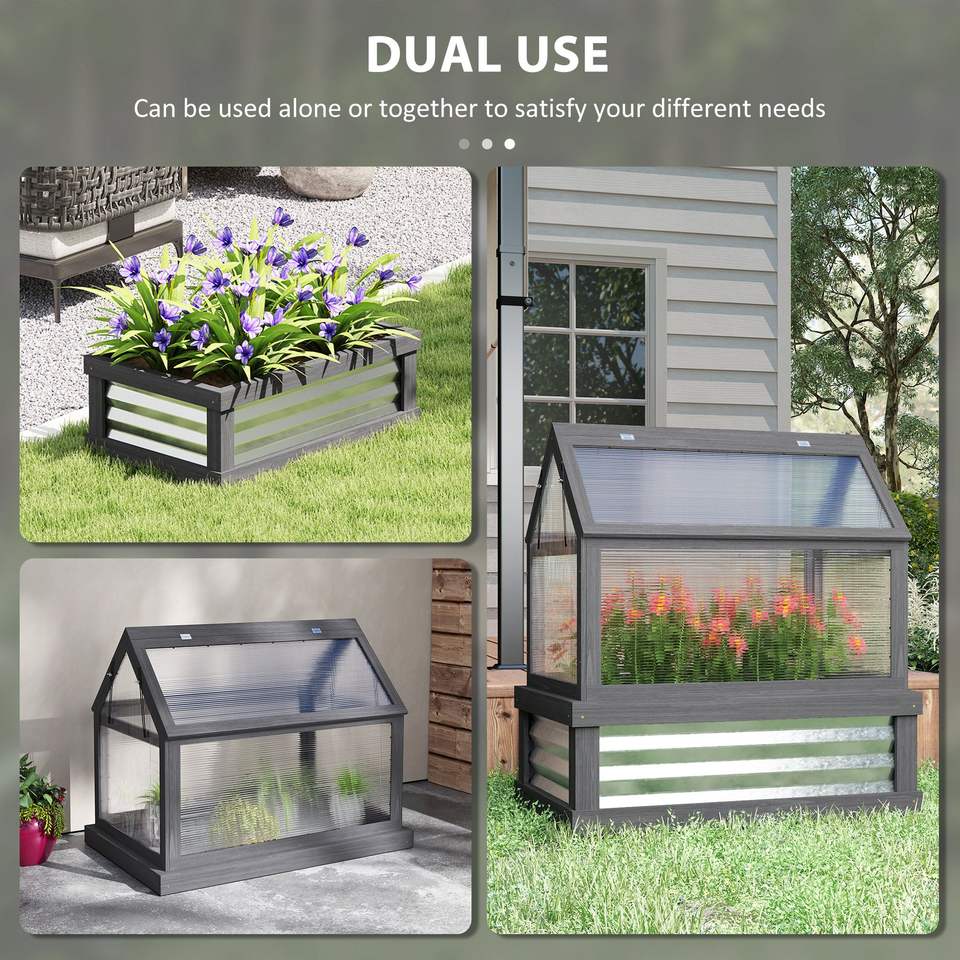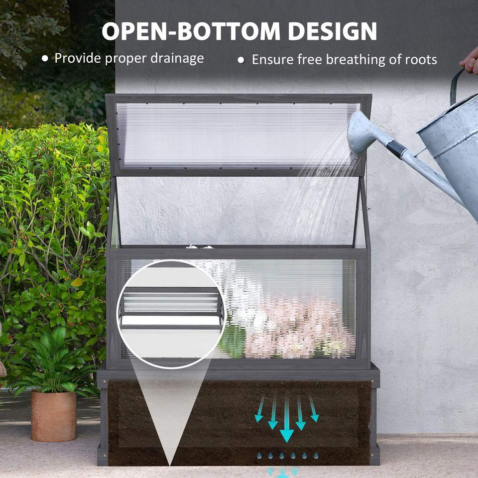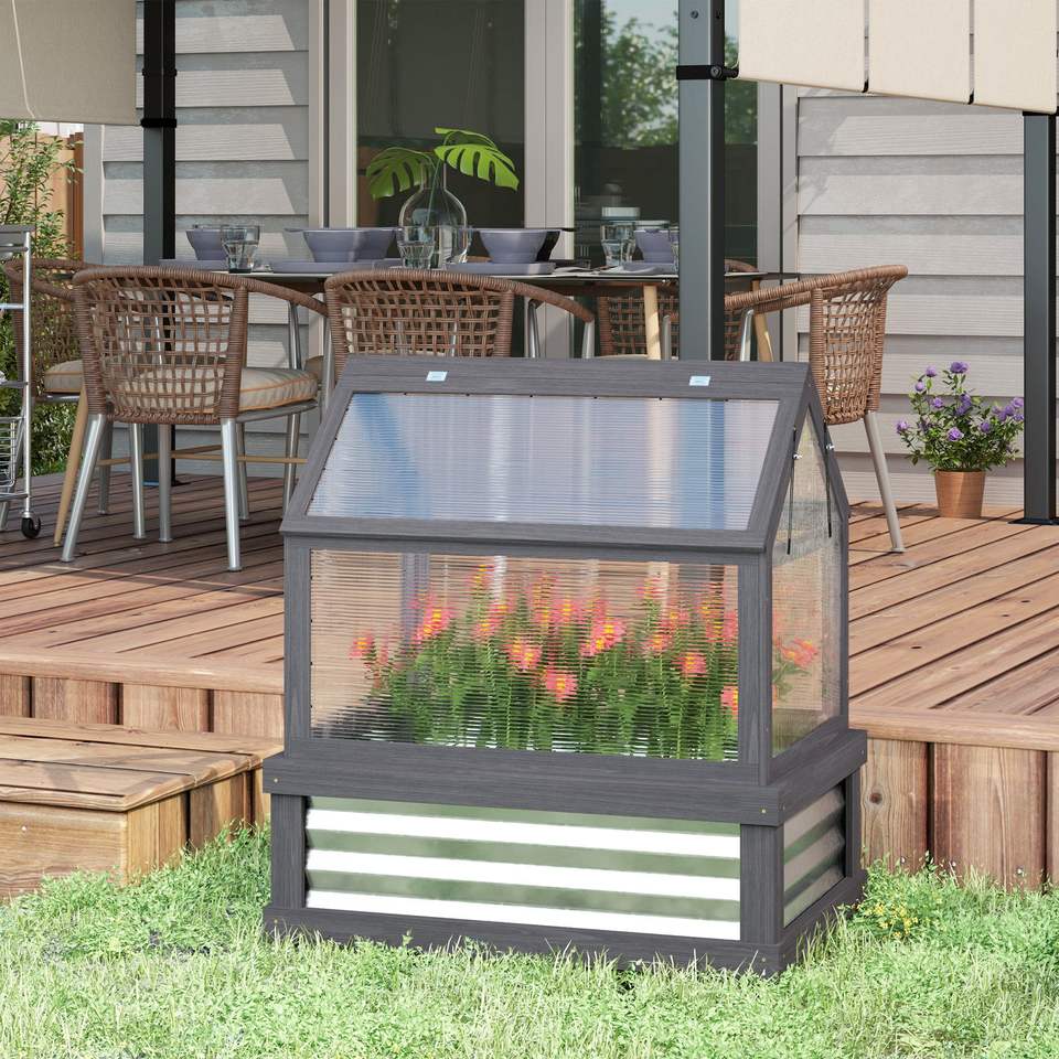 Raised Garden Flower Bed Kit Gray Wooden Cold Frame Planter 35.5\" X 22.5\" X 38.25\" Includes Greenhouse 22.5\" X 38.25\" X