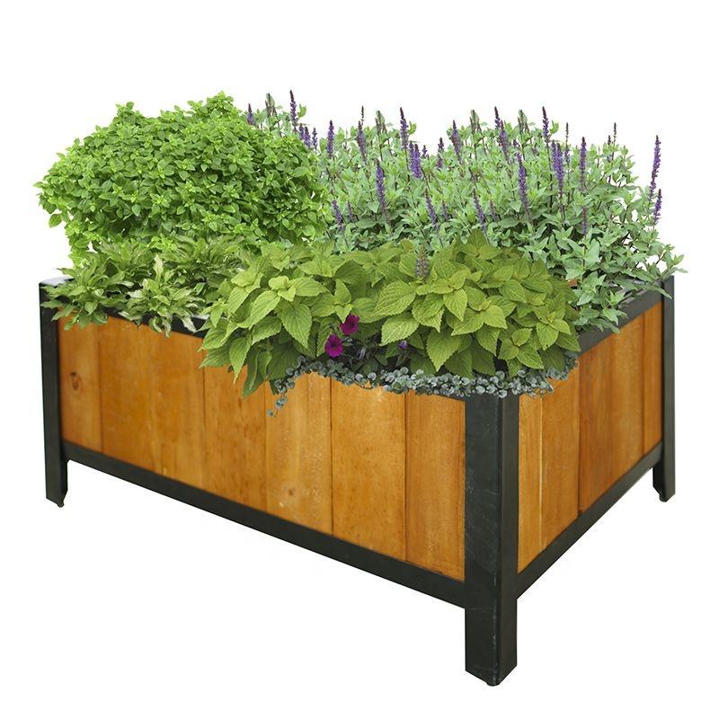 Product Name:Rectangular Wood Planter Box with Powder-Coated Steel Legs