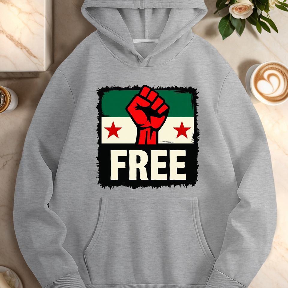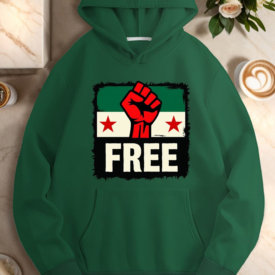 Raised red fist with FREE women's casual hoodies