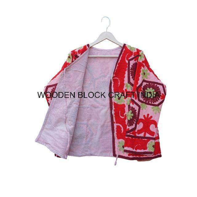 Rajasthan Handmade Duck Cotton Suzani Embroidered Floral Pattern Eco-Friendly Breathable Thick Winter Regular Fit V-Neck