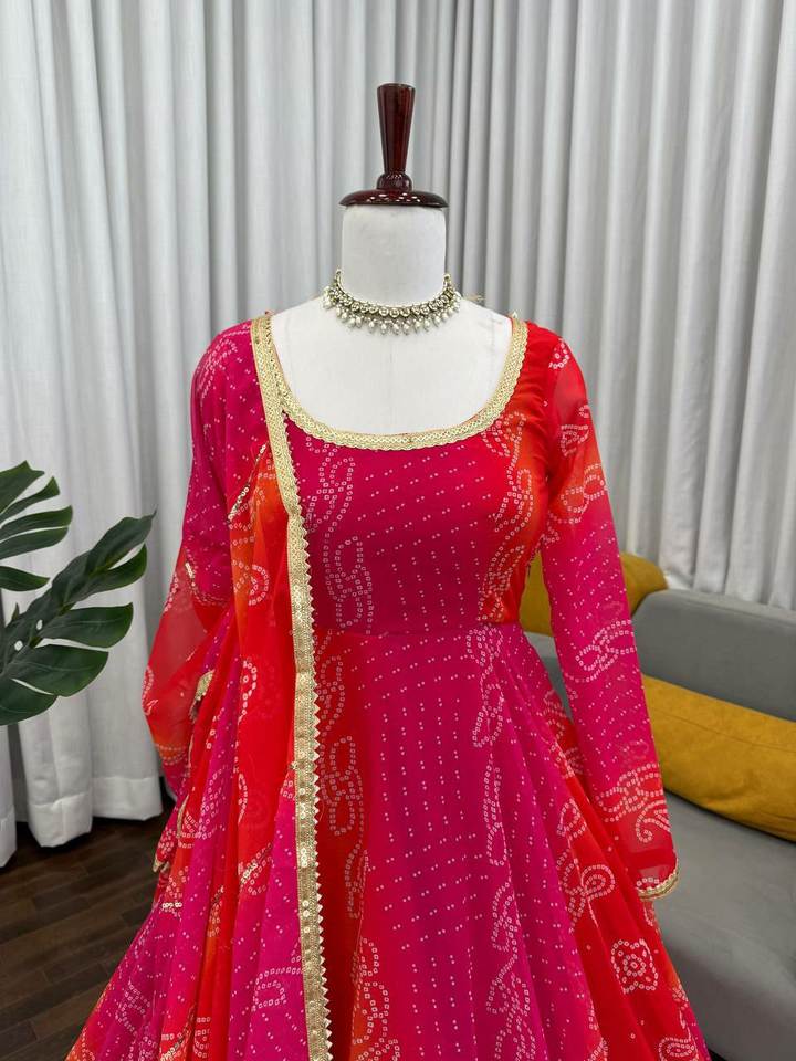 Rajasthani Cultural Style Bandhni Printed Bright Color daily wear comfort with elegance Angrakha Kurti / Salwar Suit For Sale