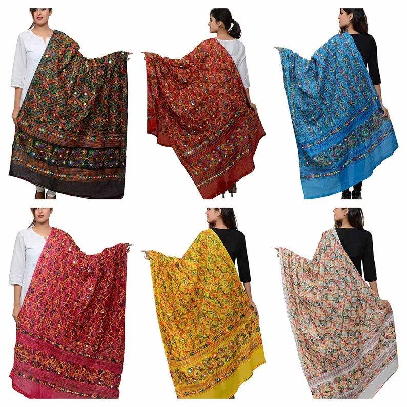 Rajasthani Embroidered Colorful Cotton Scarf/Dupatta/Stole for Back School Halloween Christmas Diwali-Reusable Bridesmaid Gift