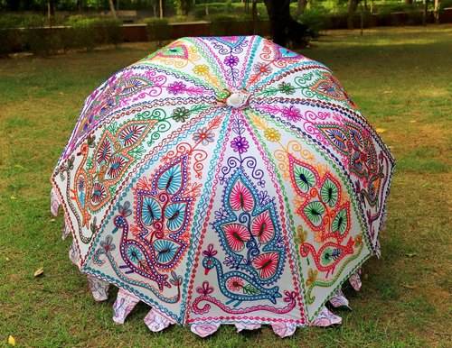 Rajasthani Embroidered Cotton Parasol Umbrella for Wedding & Event Decor Colorful Sun Protection Brolly Holi Party Return Gift