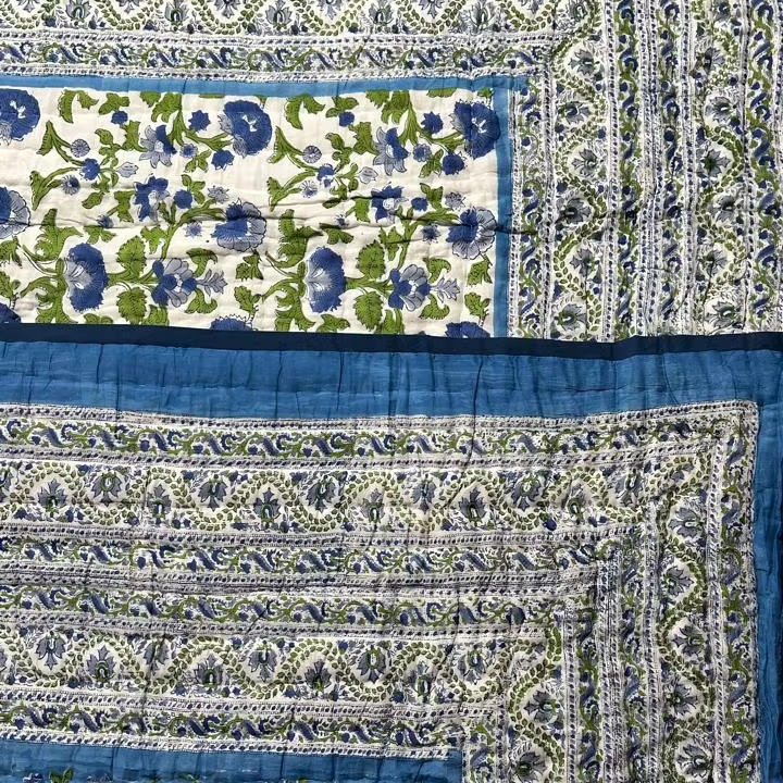 Rajasthani Kantha Design Cotton Block Print Quilted Luxury Oversized Throw Blanket Soft Bed Coverlet Cotton Fabric Dress making