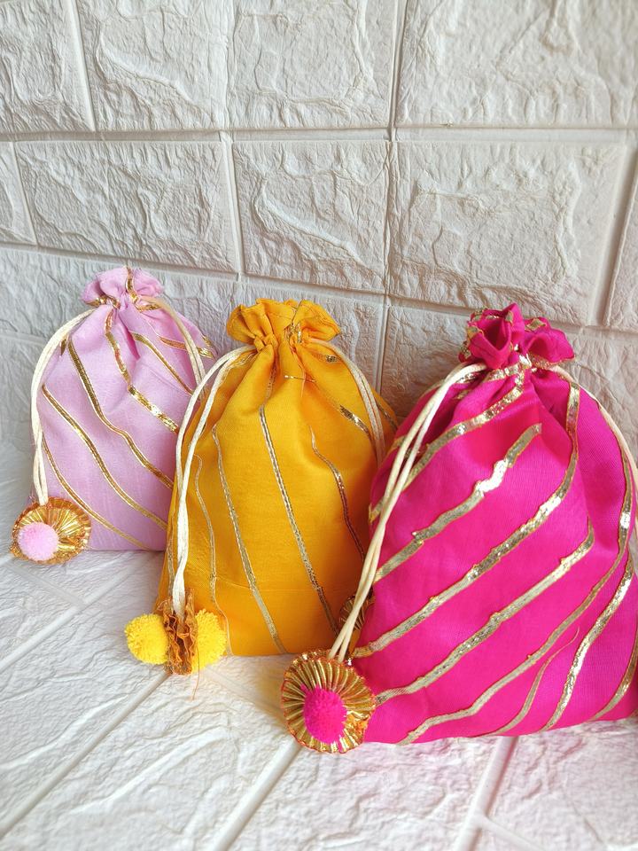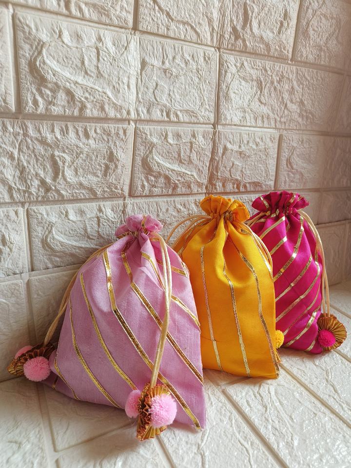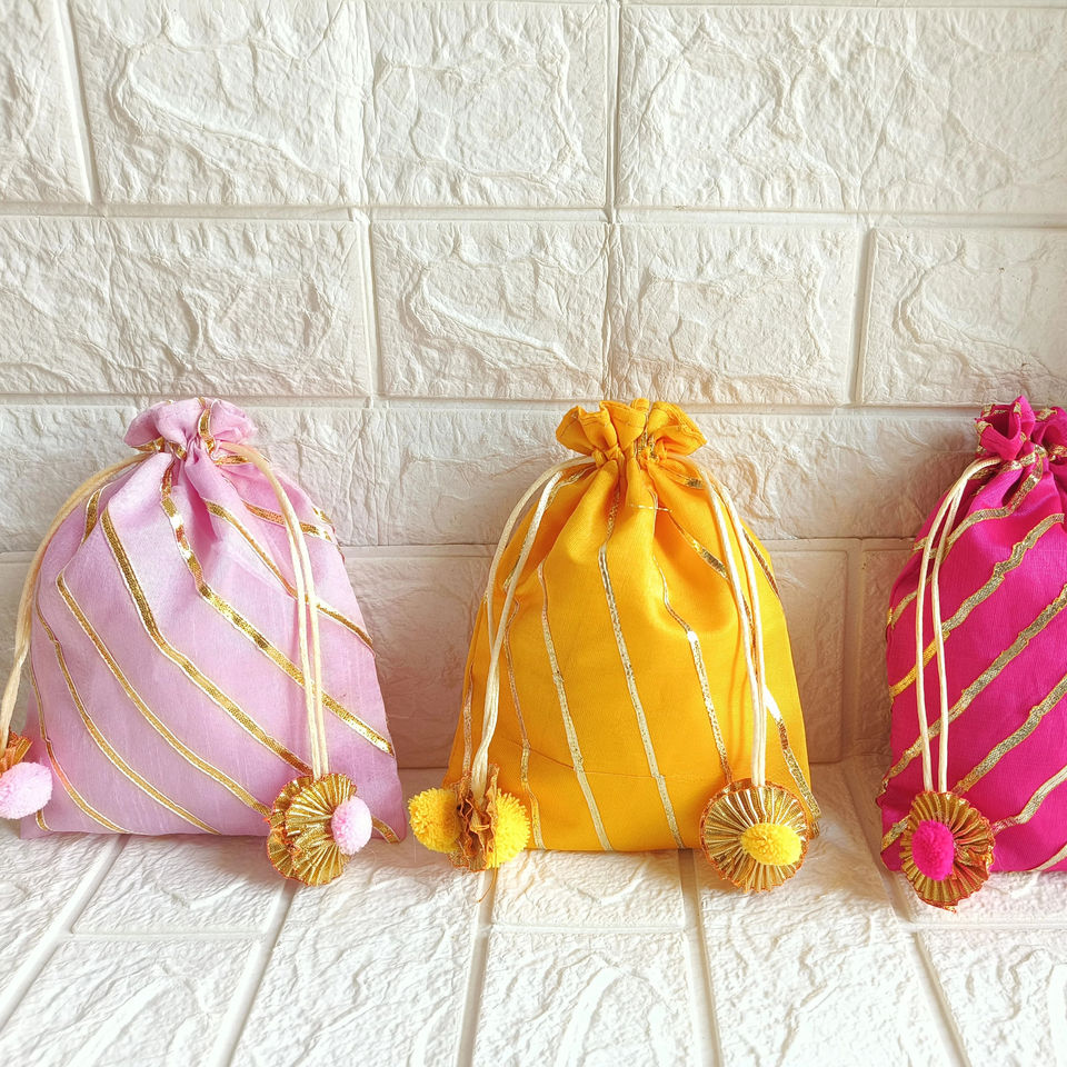 Rajasthani Leheriya Potli Bag for Women Bridal Wedding Purse Shagun Pouch Return Gift Desi Mithai/Bhaji/Ladoo Bag with Gota Work