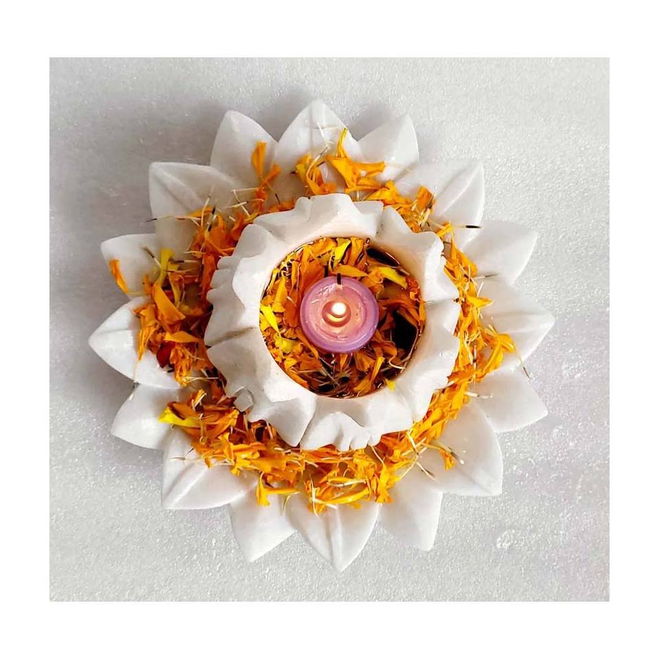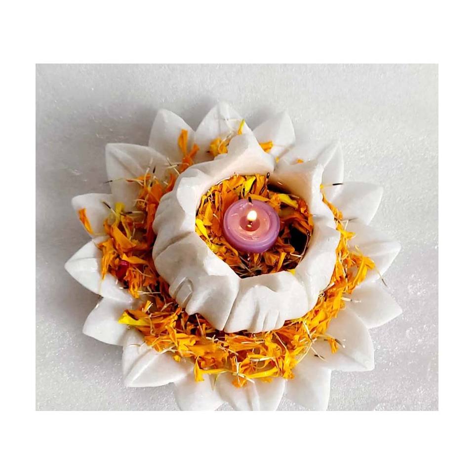 Product name:Marble Plate With Flower Cut Candle Stand Set For Festival Decor
