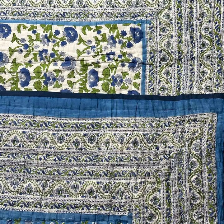 Rajasthani Print Design Cotton BlockPrint Quilted Luxury Oversized Throw Blanket SoftBed Coverlet Cotton Fabric Dressmaking