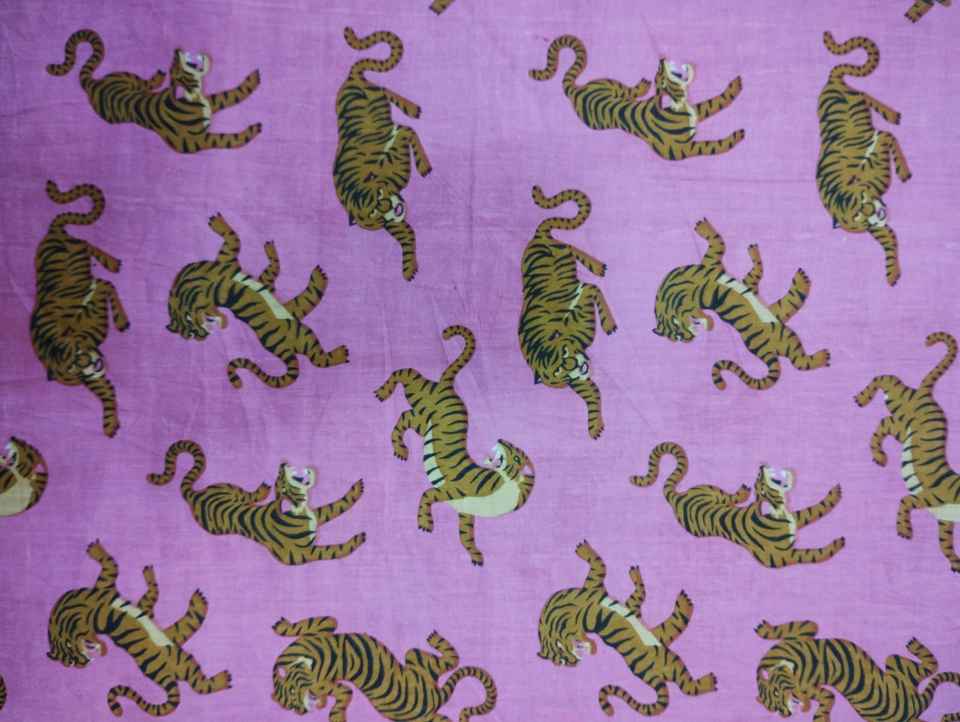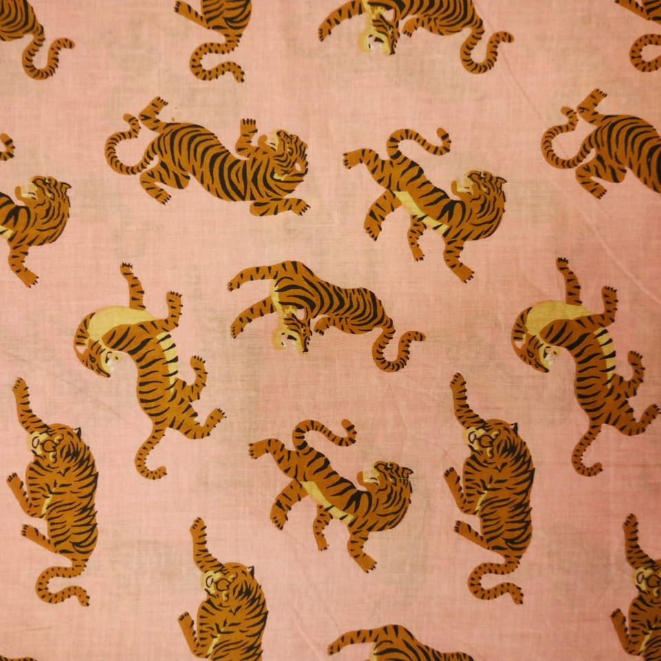 Rajasthani Tiger Printed Cotton Stretch Fabric Digital Interlock Style for Clothing Suits Bags for Men Women Girls Carded Yarn