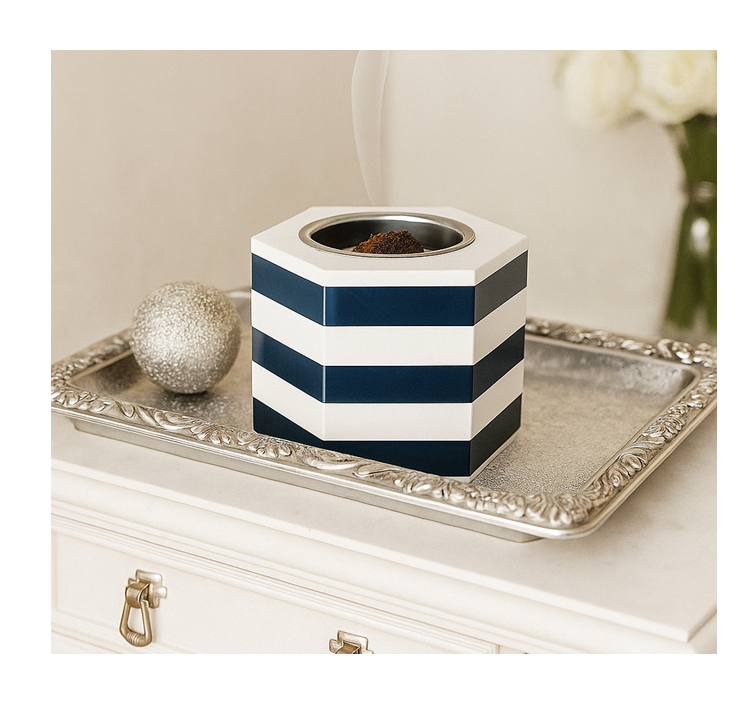 Ramadan 2026 Bakhoor Burner Handcrafted Resin Mubkhar Hexagonal body with navy & white striped pattern Incense Holder Diffuser