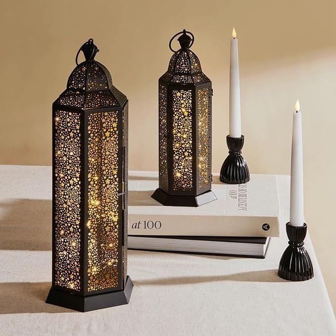 Ramadan Decor Centerpiece Featuring Crescent Moon Lanterns Islamic Calligraphy Accents Hot Selling Durable Metal for Festive