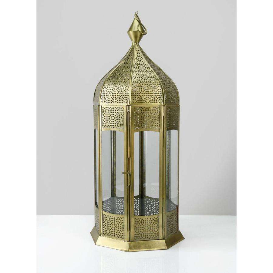 Ramadan Decor Laser Cutting Custom Designing Decorative Lanterns Gold Plated Metal Candle Holder Set of 2 Luxury Pieces