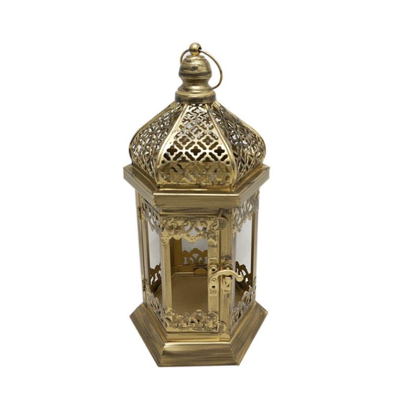 Ramadan Decorative Iron & Glass Moroccan Lantern With T Light Holder Gold Colour for Wedding Decoration Customized