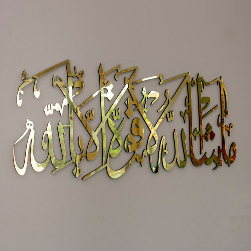 Ramadan Decorative Islamic Calligraphy Wall Arts Arabic Crafts Decorated Acrylic Lightweight Gold Finished Islamic Fresco