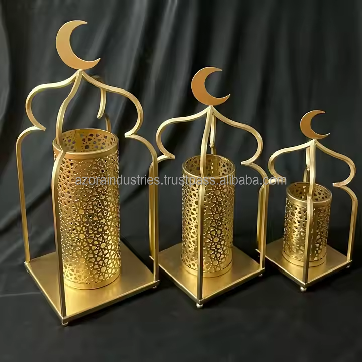 Ramadan Decorative Metal Candle Holder Moroccan Lanterns in 3 Sizes for Eid Decoration Handmade
