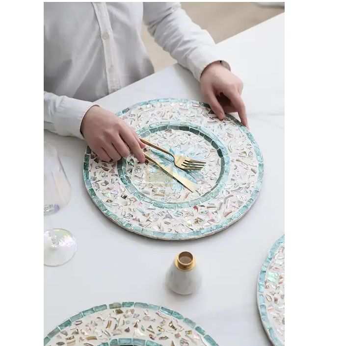Ramadan Eid Mubarak Decoration Mother of Pearl Plate for Chocolate Pastry Cake Flat Tray Inlaid Pearl