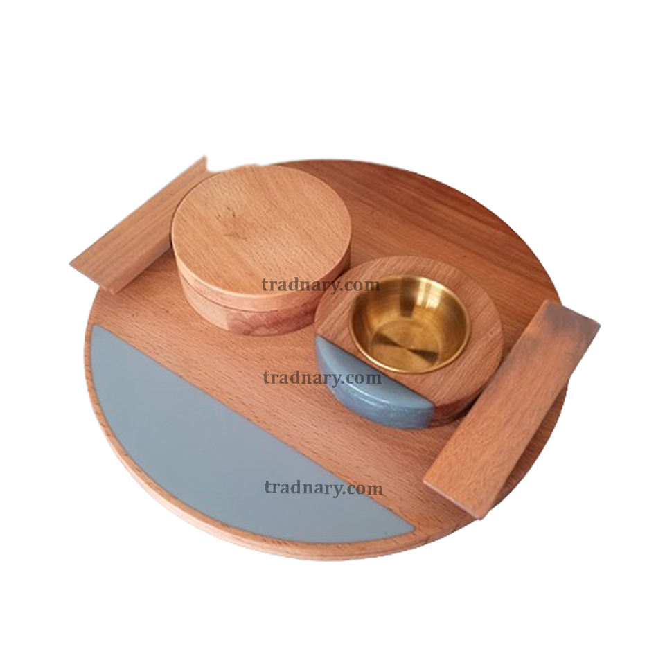 Ramadan Gift Arabic Wood & Resin Incense Burner Set with Handle Kefaf Mubkhar Indoor Use by Tradnary