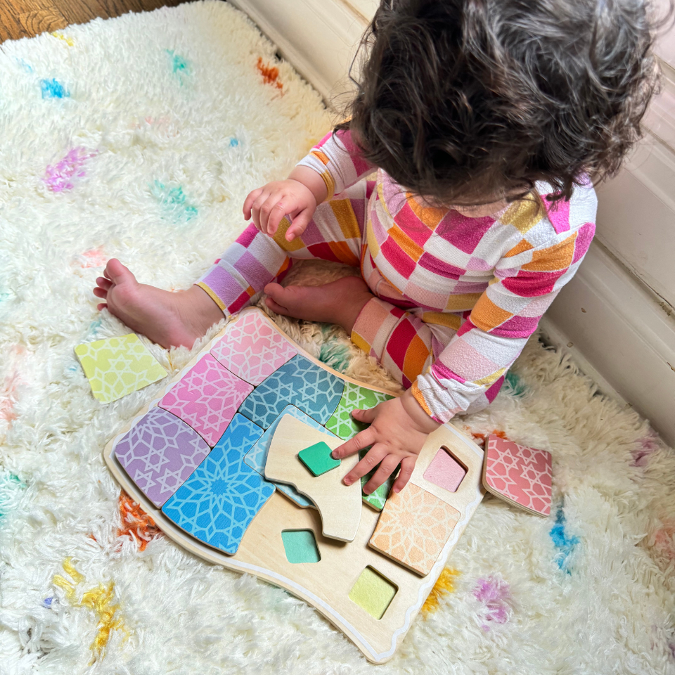 Ramadan Gift for Kids, Colorful Prayer Mat Learning Puzzle Prayer Rug Spatial Reasoning Puzzle
