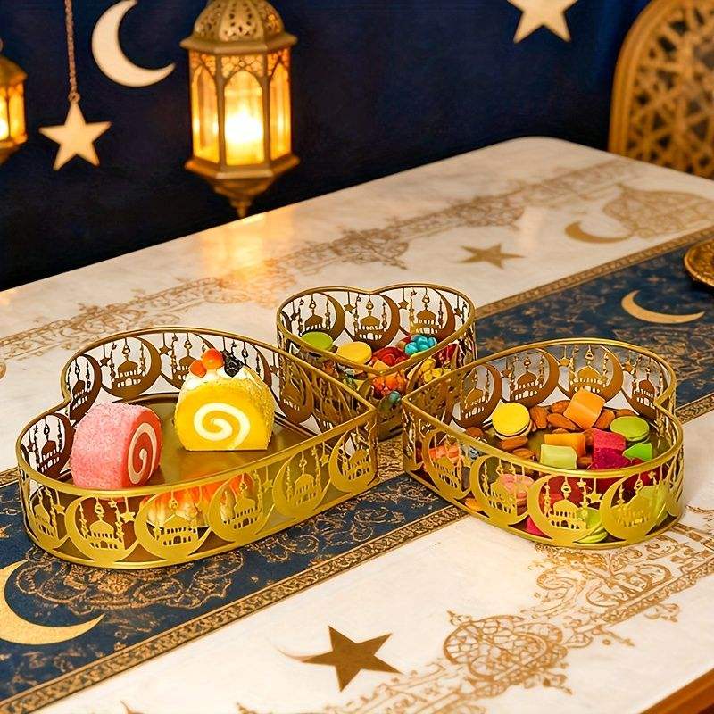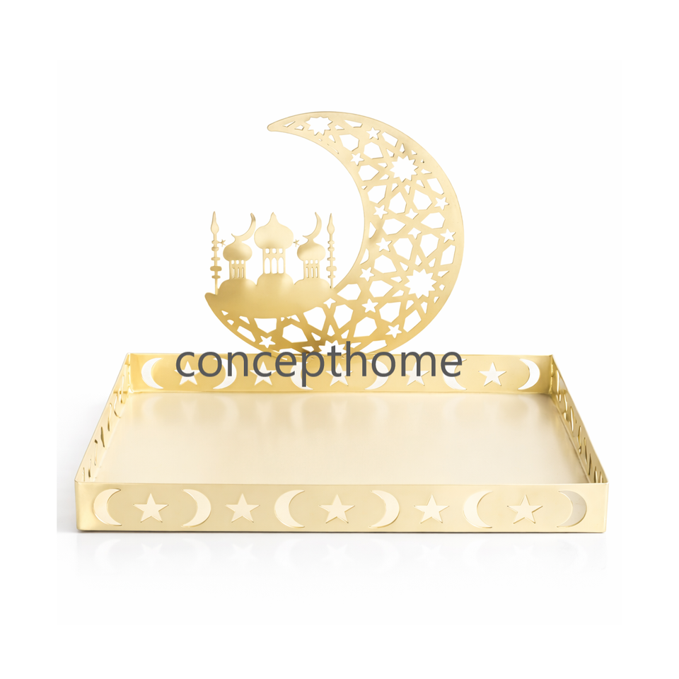 Ramadan Serving Tray EID Moon Shape Metal Tray Crescent Moon Candy Chocolate Dessert Tray for Islamic Holiday Decoration
