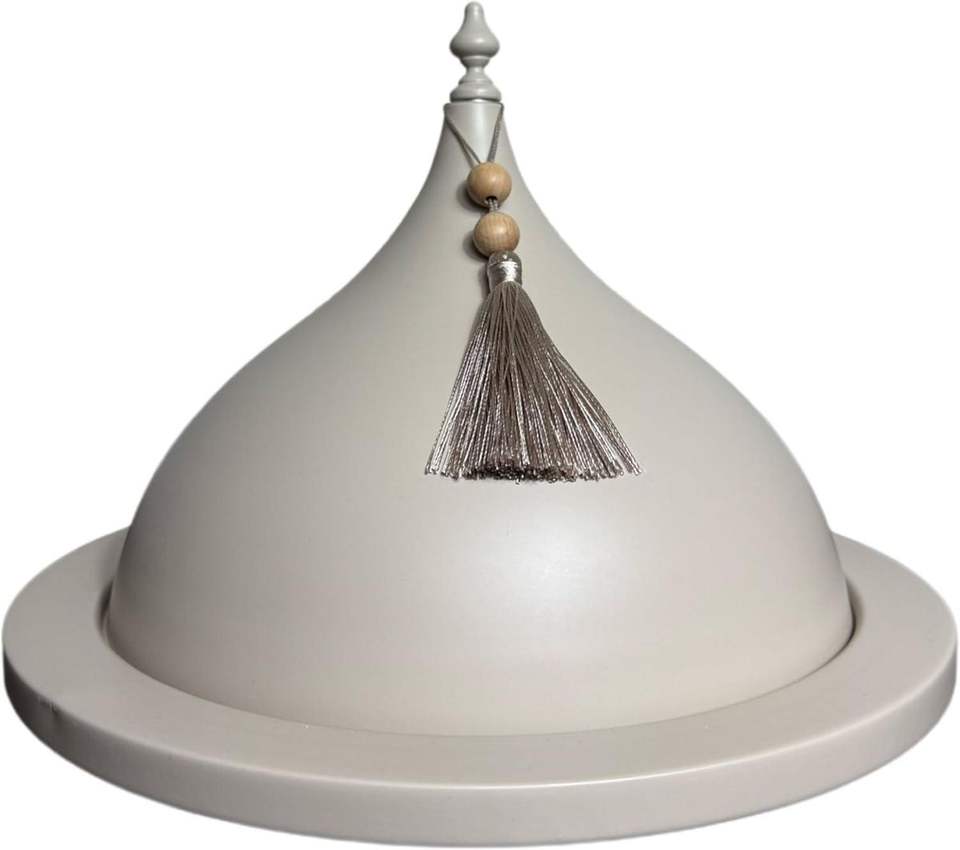 Ramadan premium metal serving dish with hammered dome lid luxury food presentation dates dry fruits sweets chocolates snacks