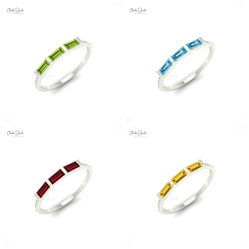 Ranking Supplier 4x2mm Baguette Cut Semi Precious Customize Gemstone Ring 14k Gold Diamond Anniversary Ring Jewlery Wholesale