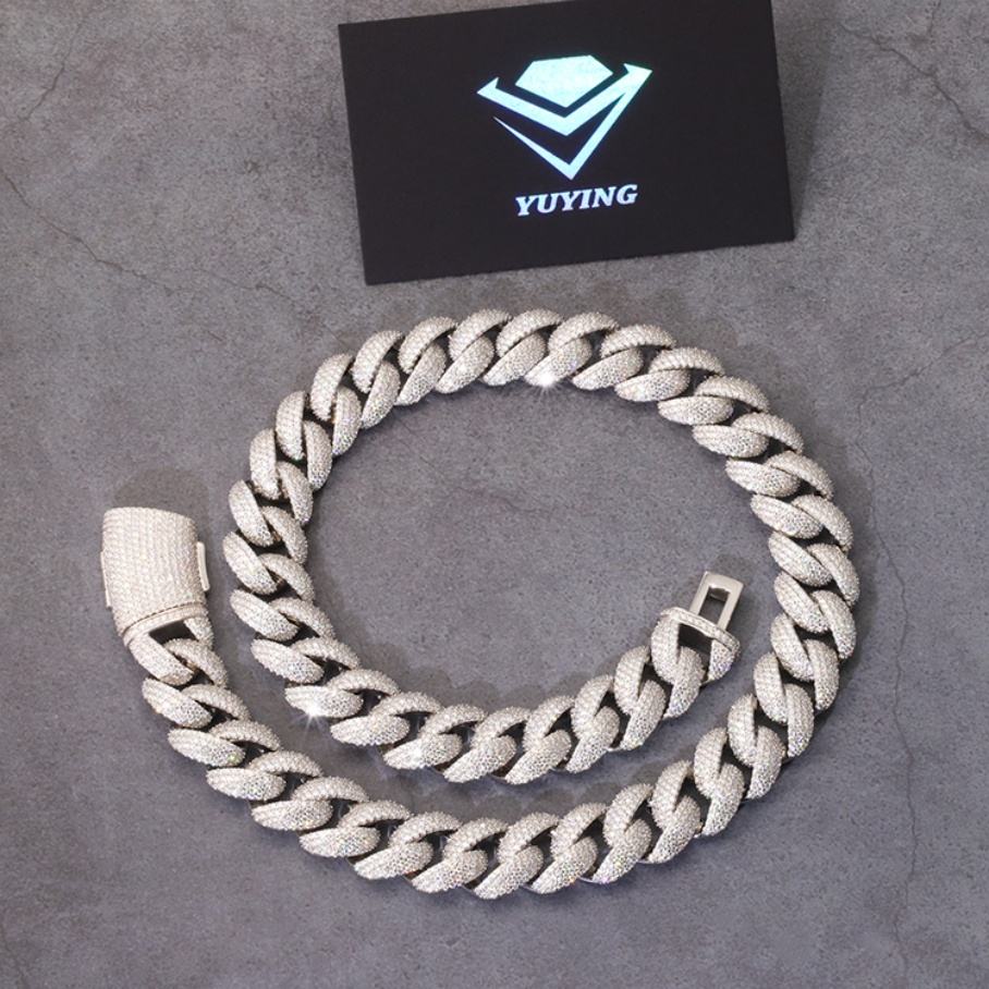 Rapper Style 925 Silver Necklace for Men 17mm Wide With GRA Moissanite Diamond Iced Out Cuban Link Chain