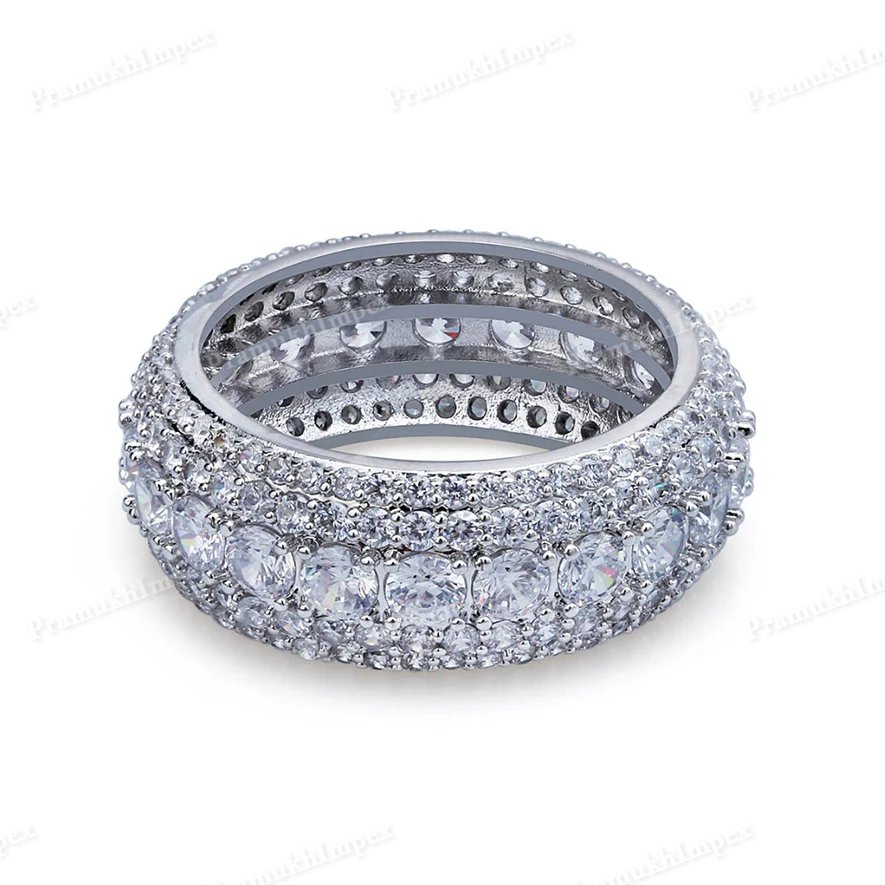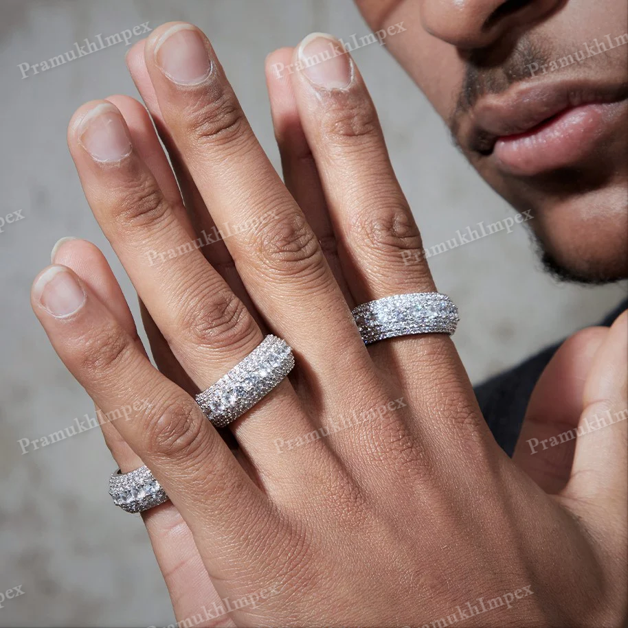 Rapper Style Ring GRA Certified Hip Hop Ring 5 Row Moissanite 925 Silver Band For Men Sparkly Eternity Band For Him Trendy Ring