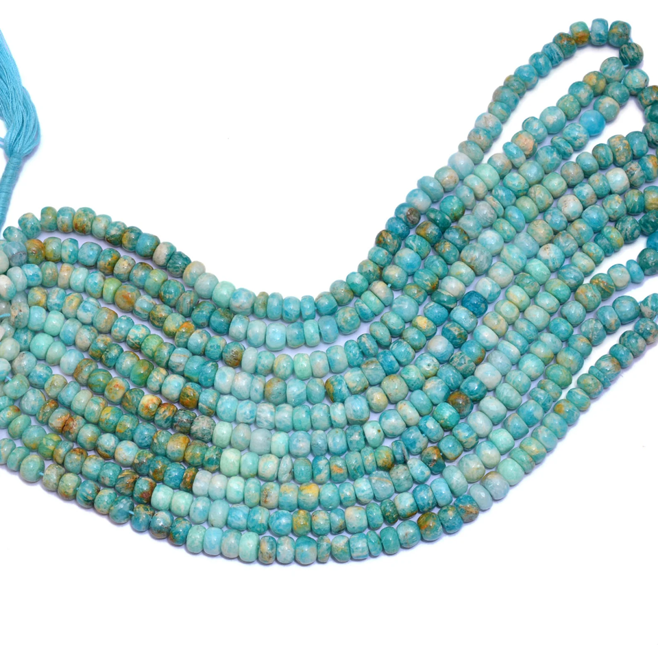 Rare Amazonite Gemstone 6mm-7mm Smooth Rondelle Bead Natural Multi Amazonite Semiprecious Gemstone Bead Loose for Jewelry Making