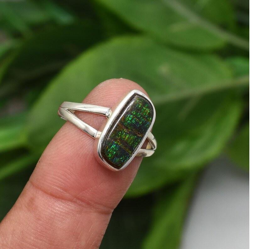 Rare Canadian Ammolite Gemstone Ring Handmade in 925 Sterling Silver Solid Silver Statement Jewelry Ring for Women