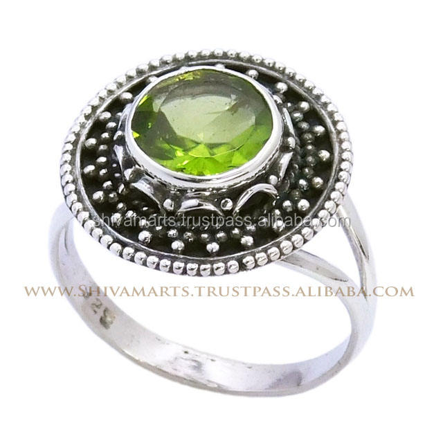 Rare Green Peridot Gemstone Bezel Setting Vintage Rhodium Plated Handmade 925 Sterling Silver Wedding Party Ring Jewelry