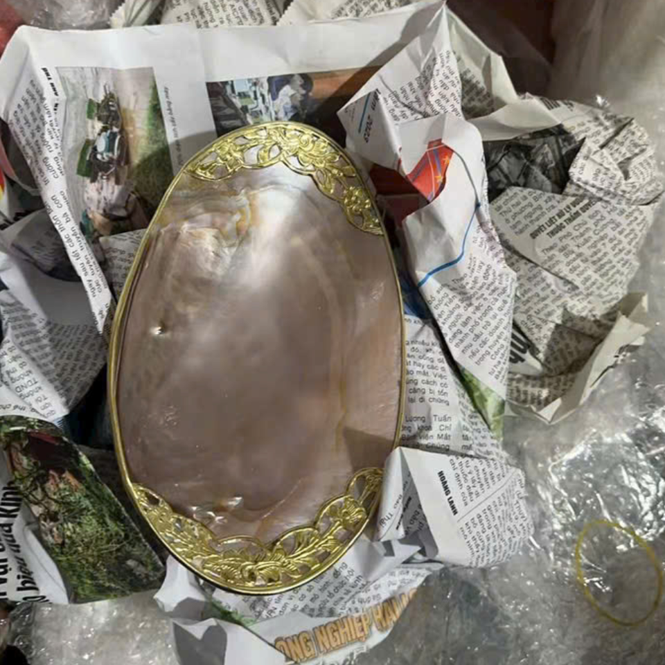 Rare Large 30cm Natural Shell Plate featuring Rainbow Gold, White, and Black Luster with Exquisite Silver Plating Luxury Style
