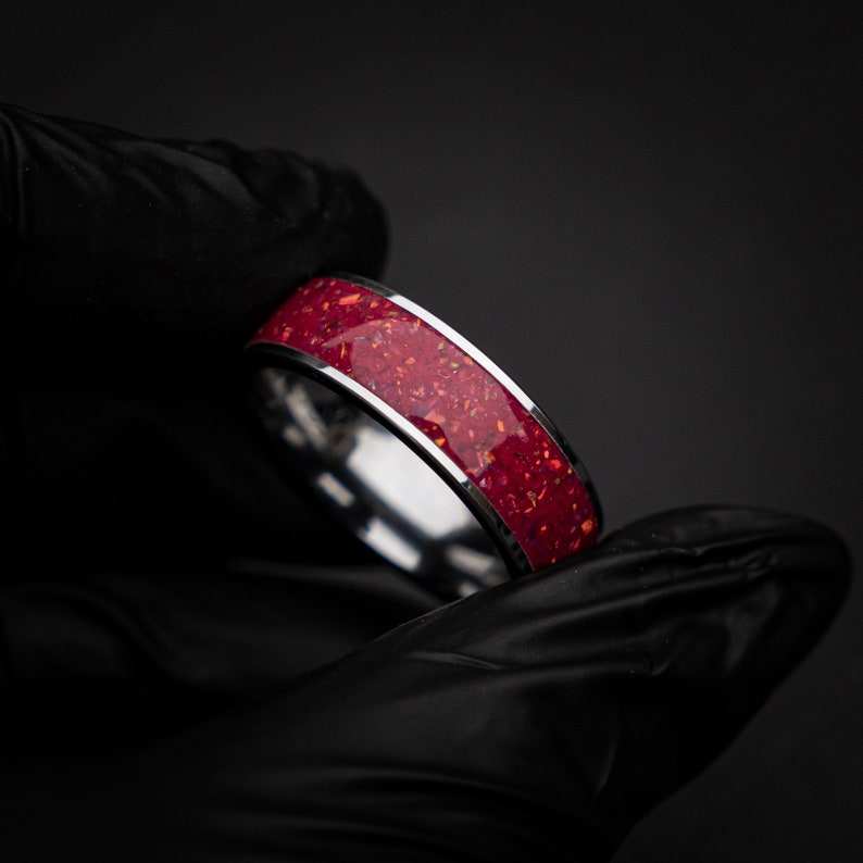 Keyword:Rare Pink Fire Opal Couple Band Reflects Deep Emotional Bond Romance